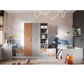 Модульная детская Турбо белый / шарли кашемир / шарли терракота