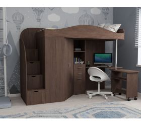 Кровать-чердак Кадет-2 угловая с металлической лестницей Дуб Молочный/Ирис