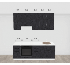 Размер: Ширина: 2200 мм. Высота: 2336 мм. Глубина 600 мм (со столешницей)